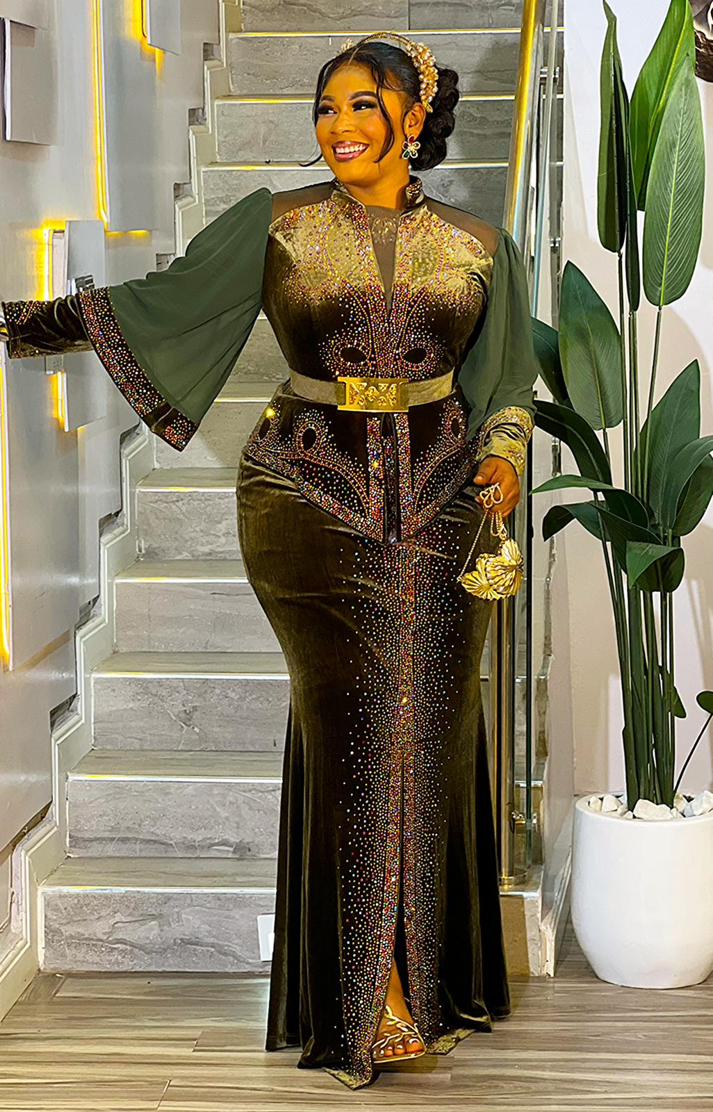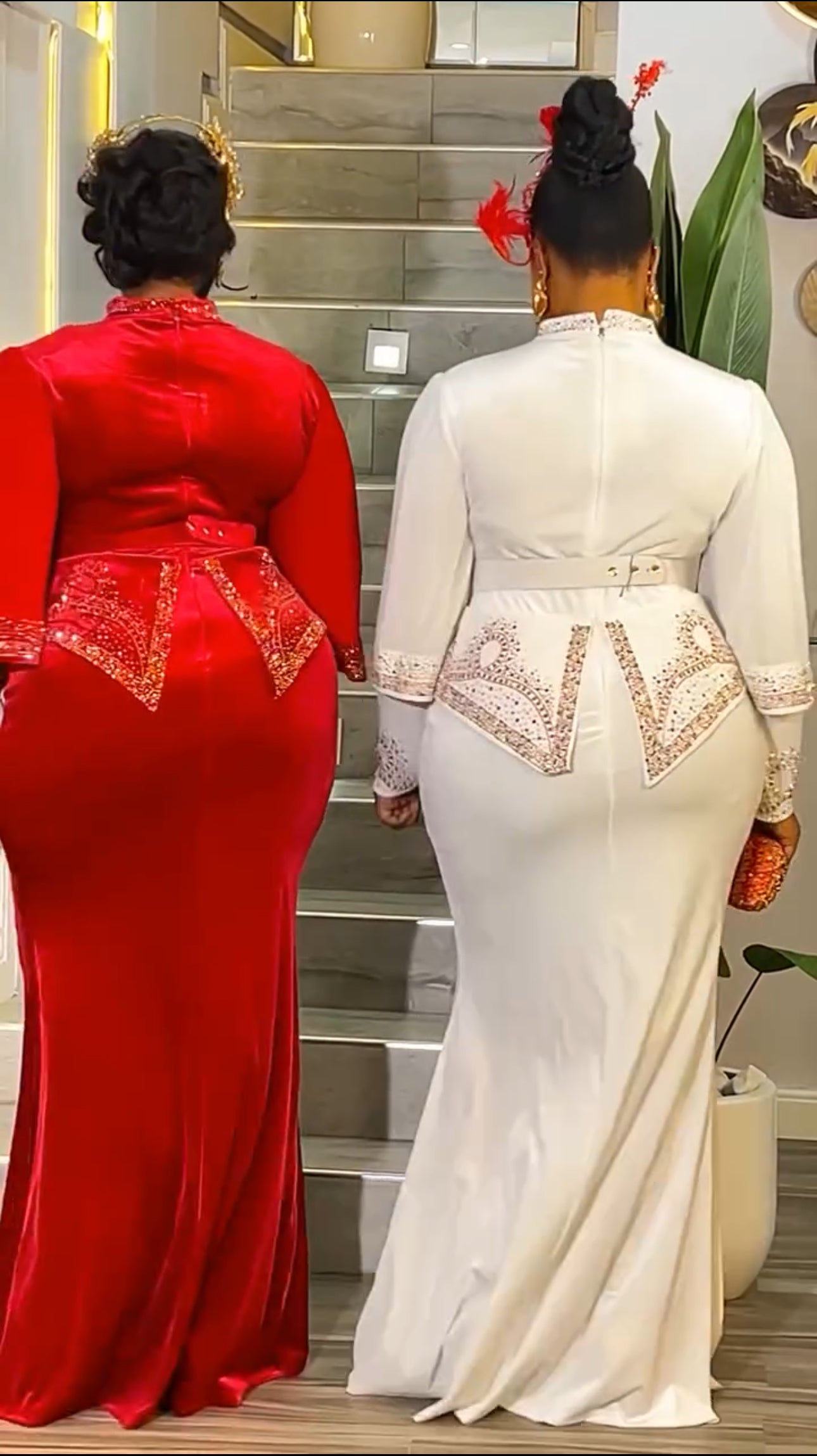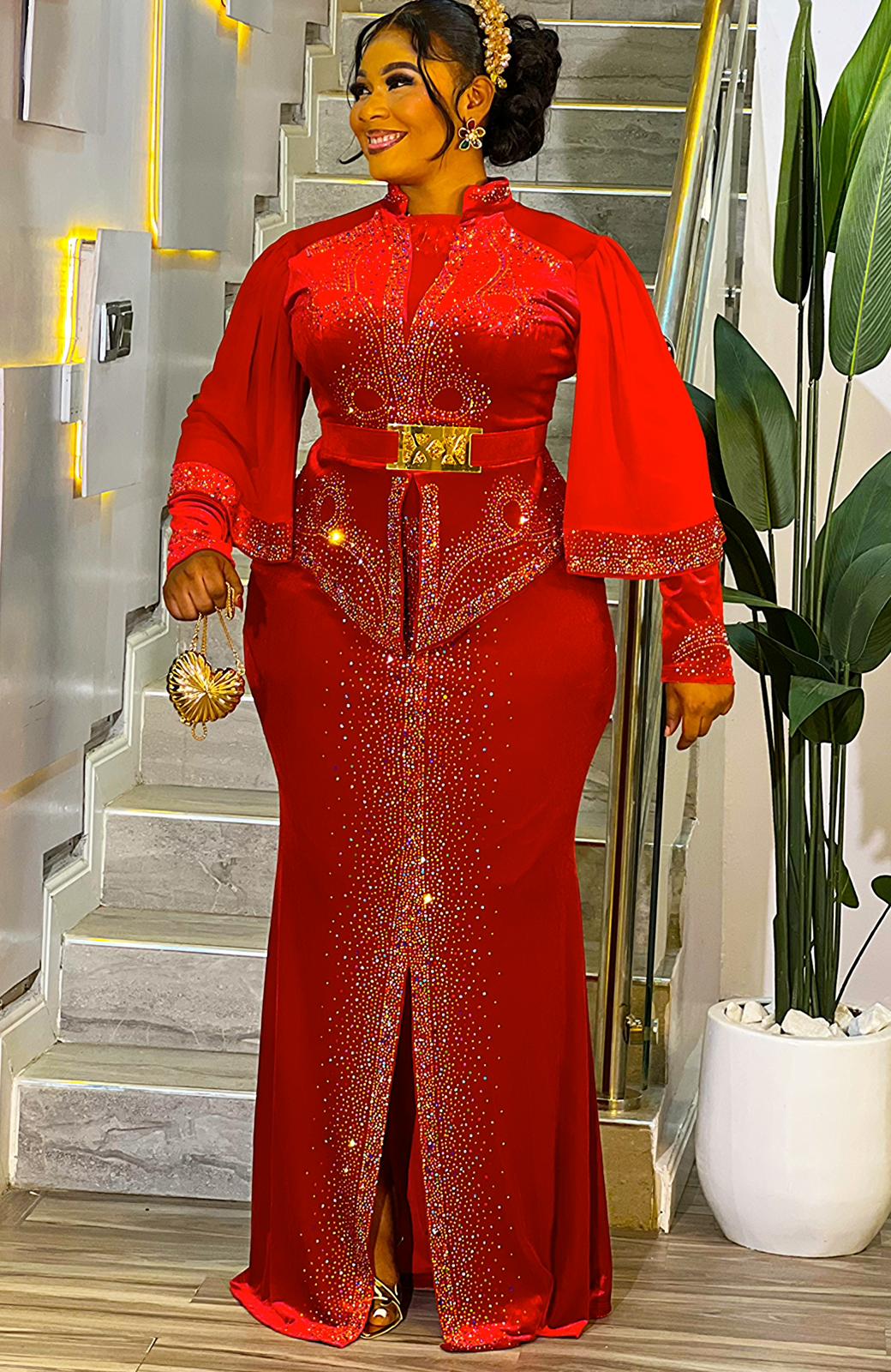 Red Velvet Crystal Embellished Peplum Maxi Dress - Wedding Guest Mother of The Bride Anniversary Cocktail