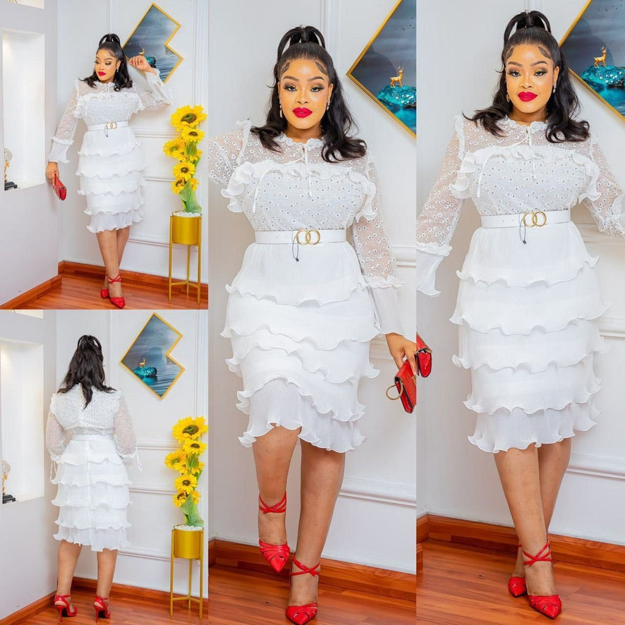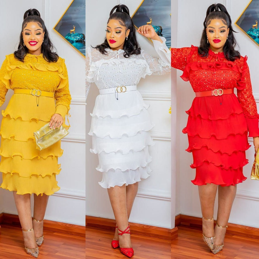 Red Embellished Waterfall Ruffle Midi Dress for Wedding Guest Bridal Photoshoot Birthday Dinner
