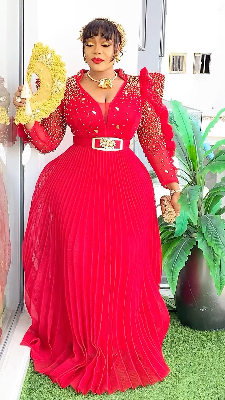 Red Dramatic Sleeve Embellished Floor Length Maxi Gown | Party Birthday Mother-of-the-Bride Graduation