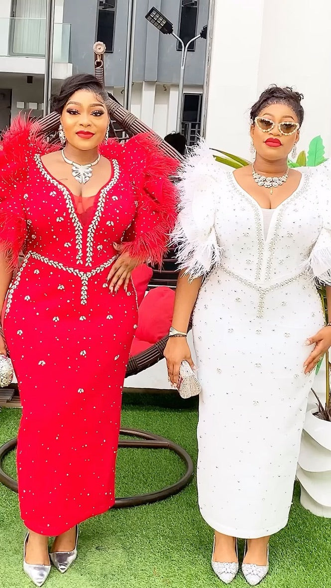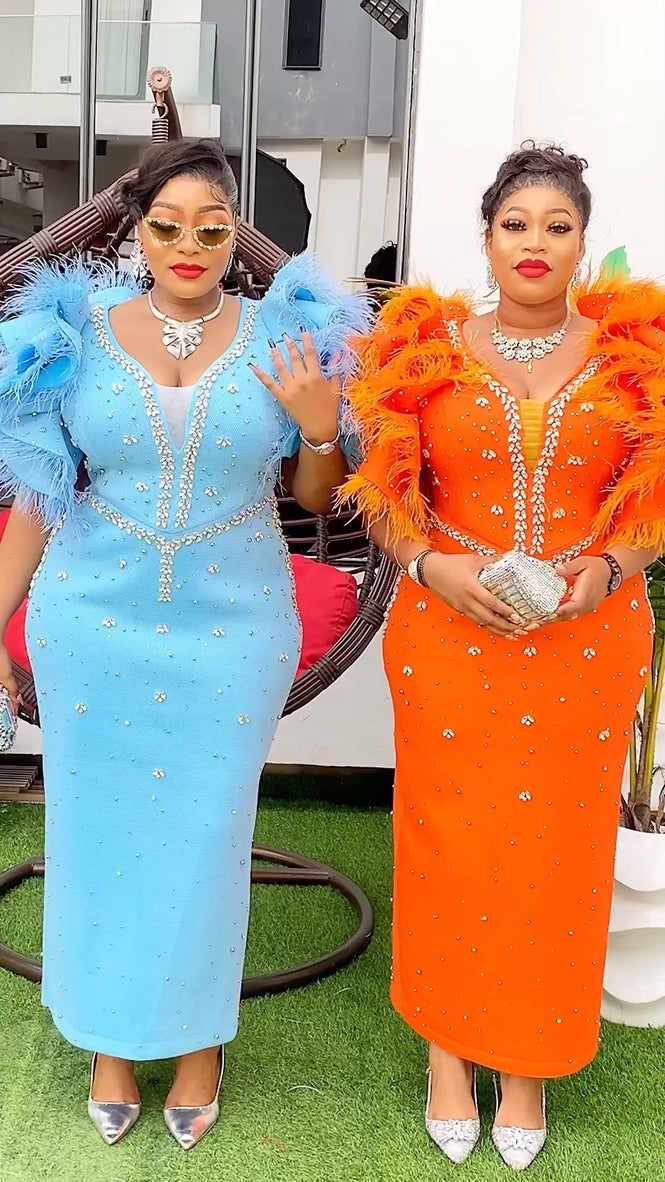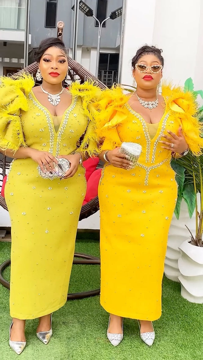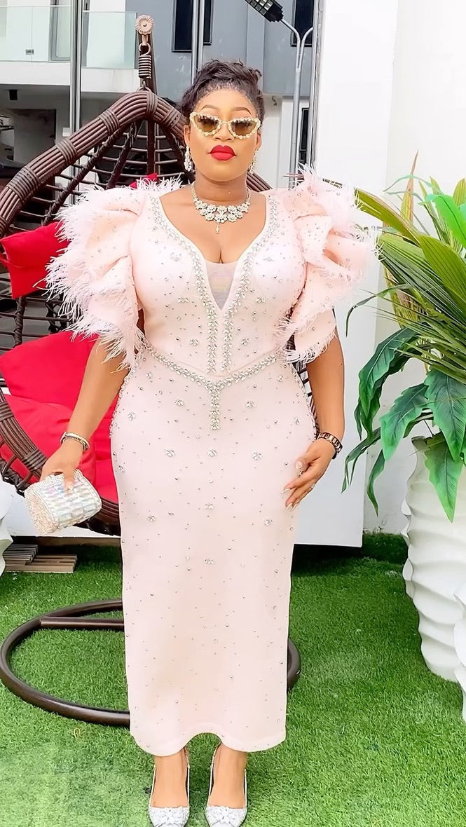 RUFFLE FEATHER SLEEVES MAXI DRESS