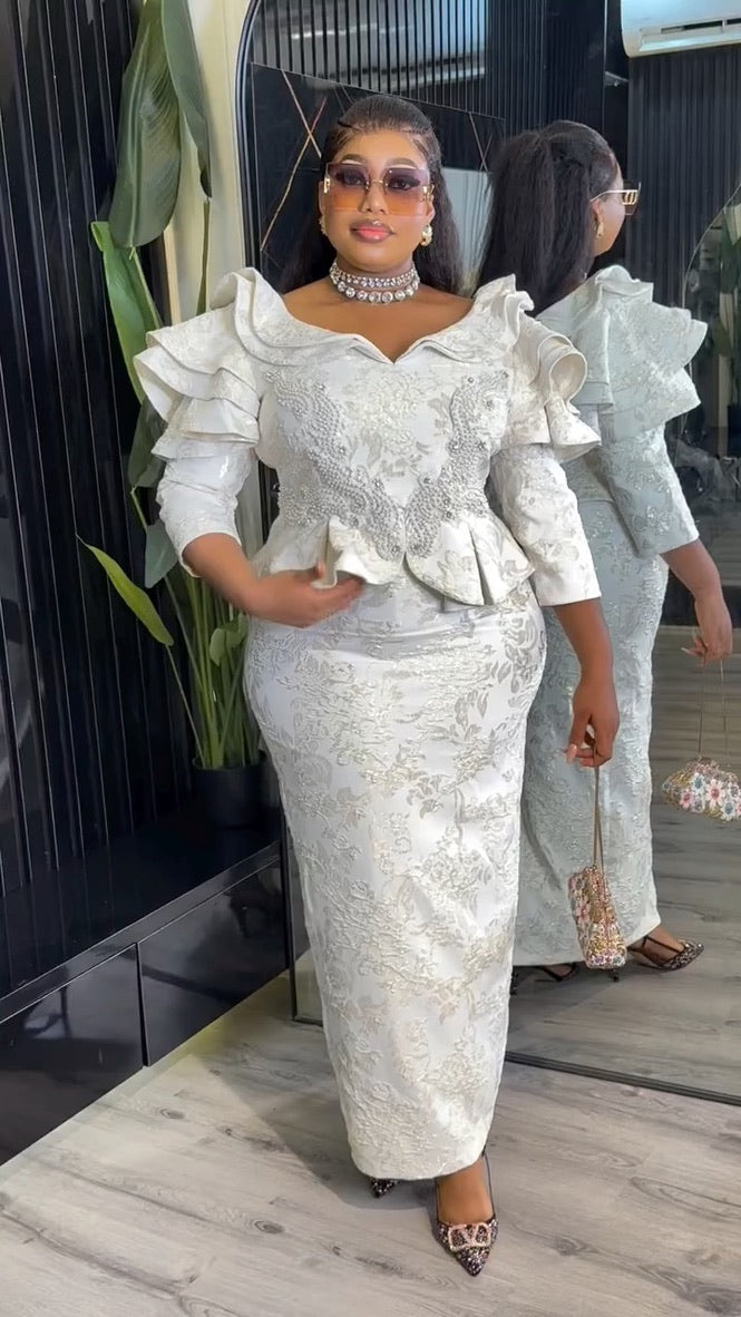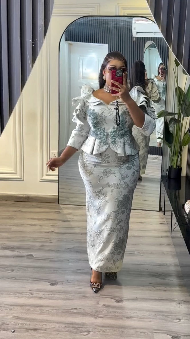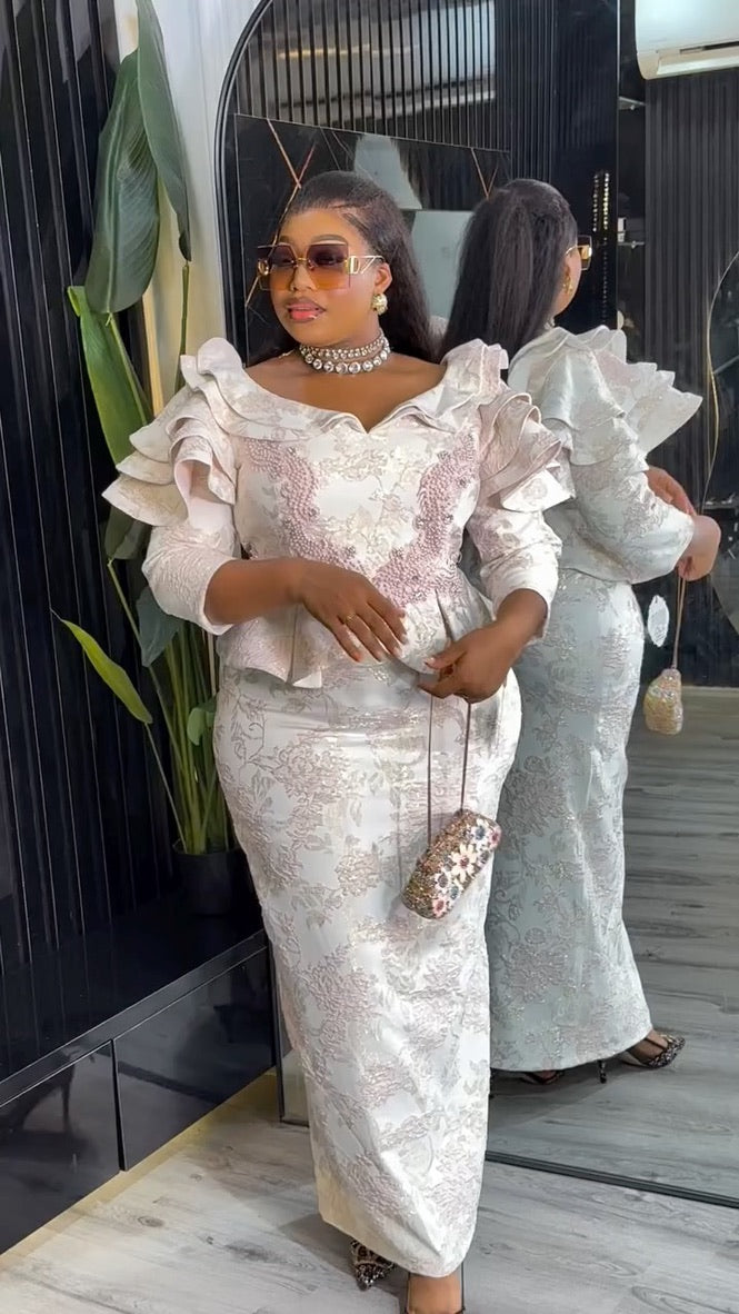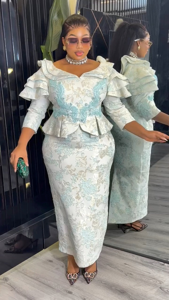 Ruffle Sleeve Applique Embroidered Top and Skirt | Wedding Guest Birthday Party Anniversary Photoshoot Celebration