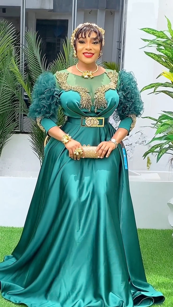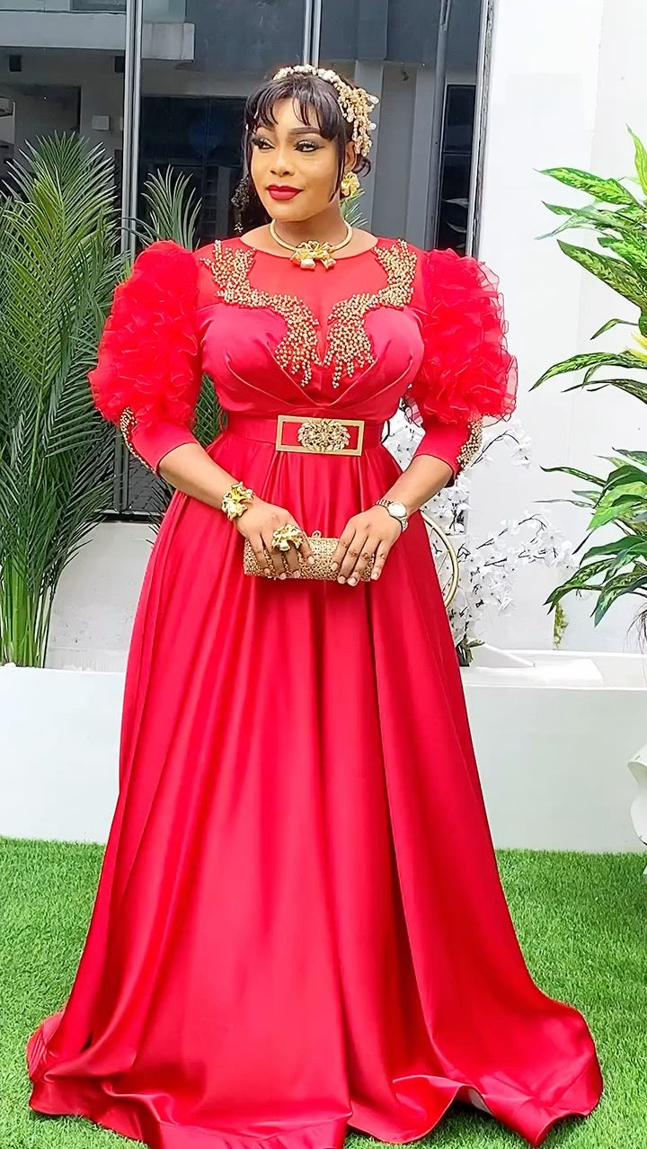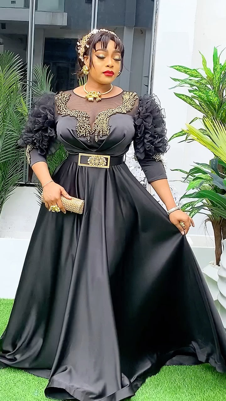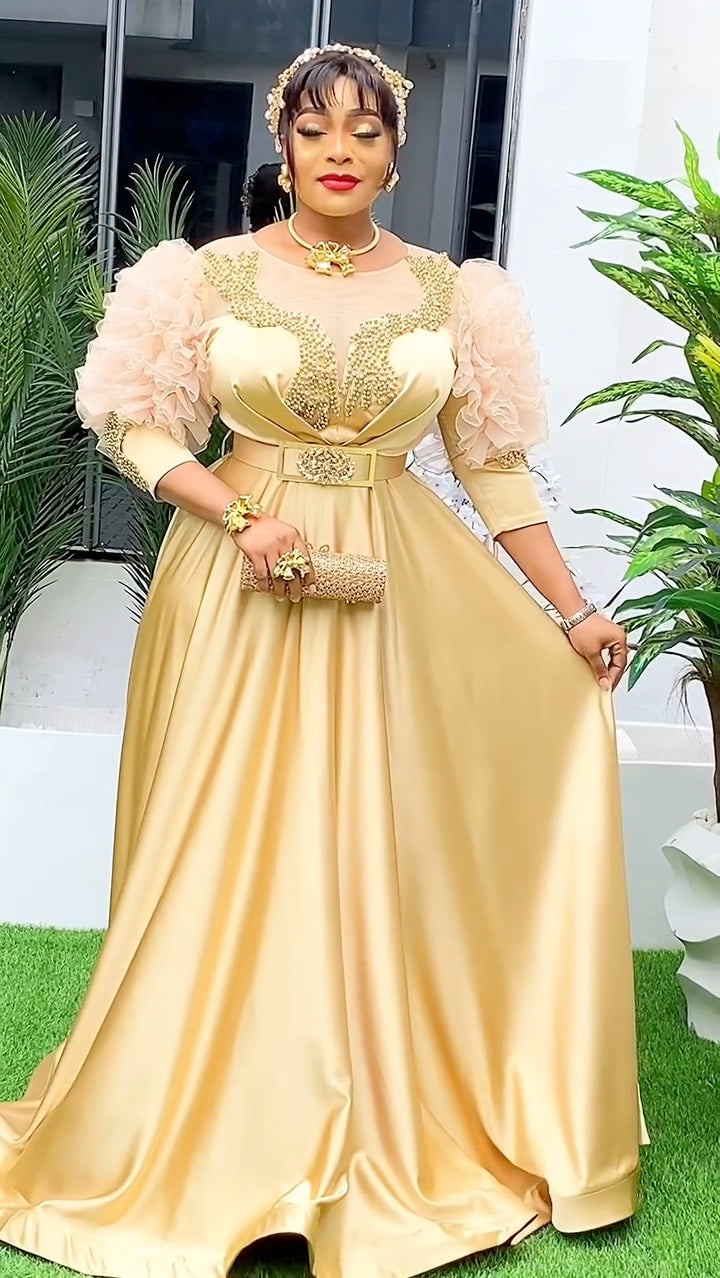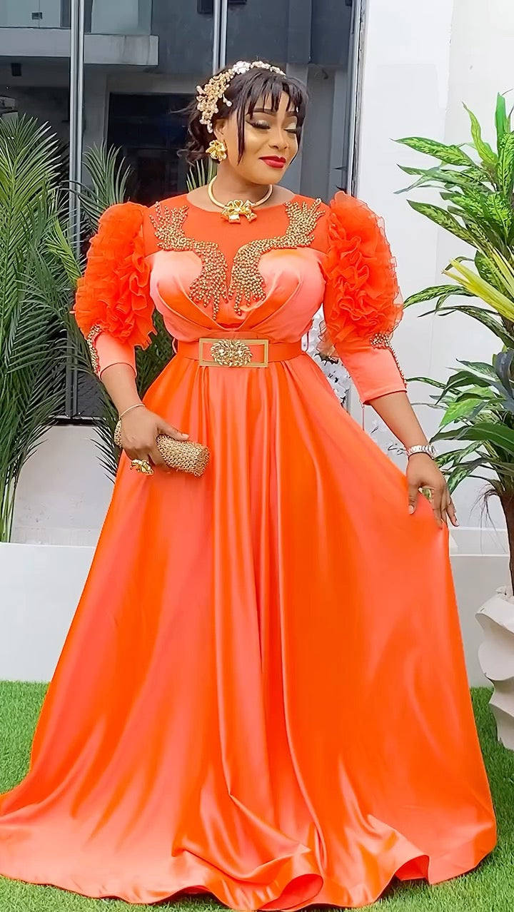 Ruffle Sleeve Embellished Gown | Wedding Birthday Party