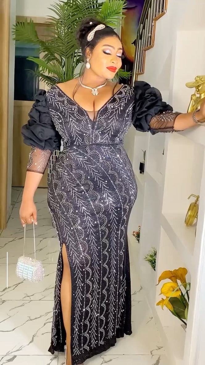 Ruffle Sleeve Embellished Side Slit Dress