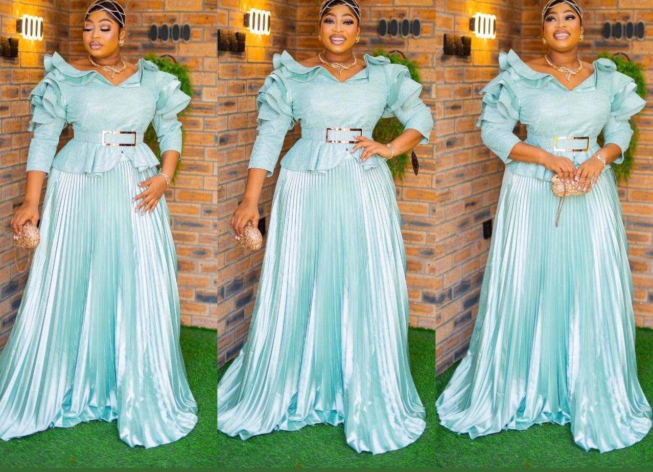 Ruffle Sleeve Embroidered Top and Peplum Skirt | Mother of The Bride Gala Birthday Party Wedding Guest