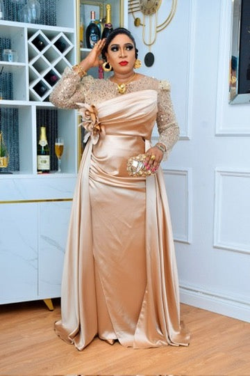 Sequin 3D Flower Overskirt Evening Gown | Party Wedding Guest Gala Pageant Mother of The Groom