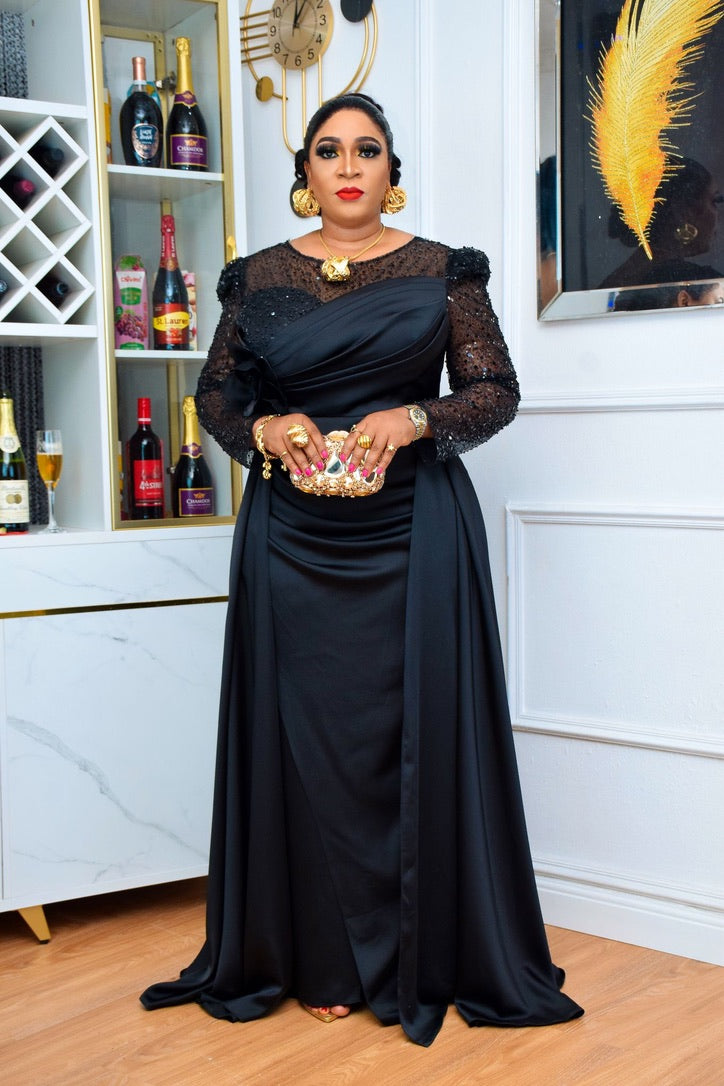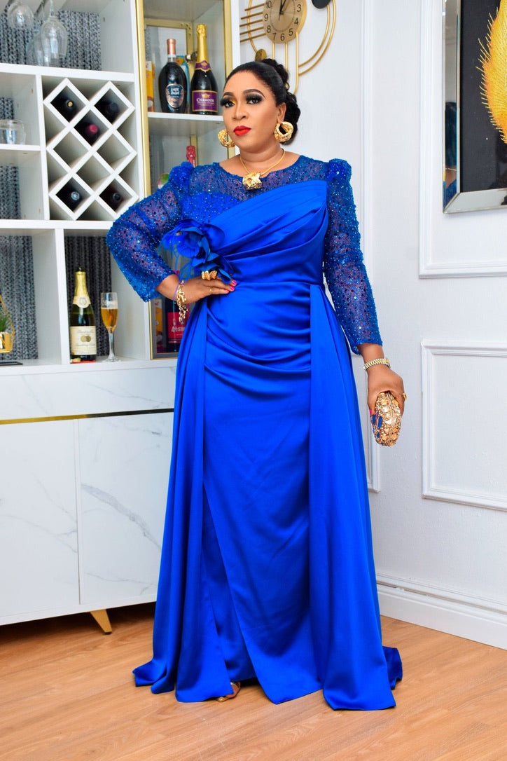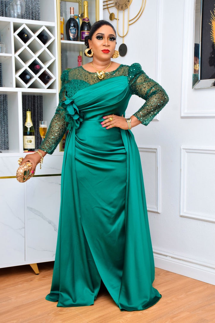 Sequin 3D Flower Overskirt Evening Gown | Party Wedding Guest Gala Pageant Mother of The Groom