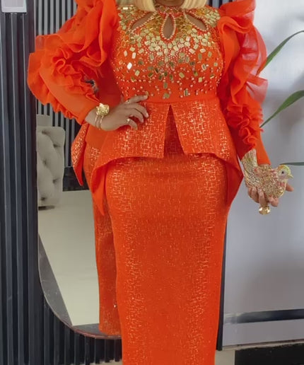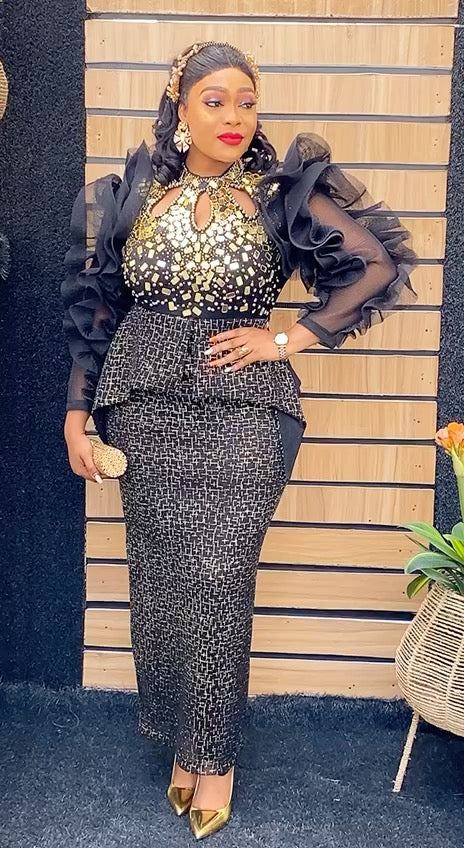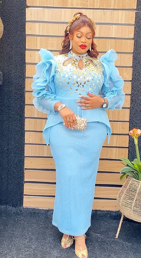 Embellished Dramatic Sleeves Peplum Maxi Dress 4 Colors