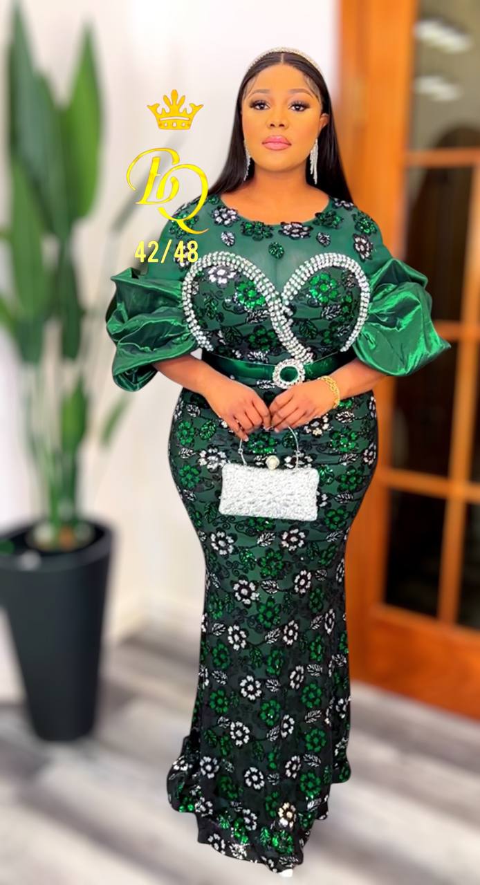 Sequin Embellished Dramatic Sleeve Maxi Dress | Wedding Party Birthday Celebrant Gala