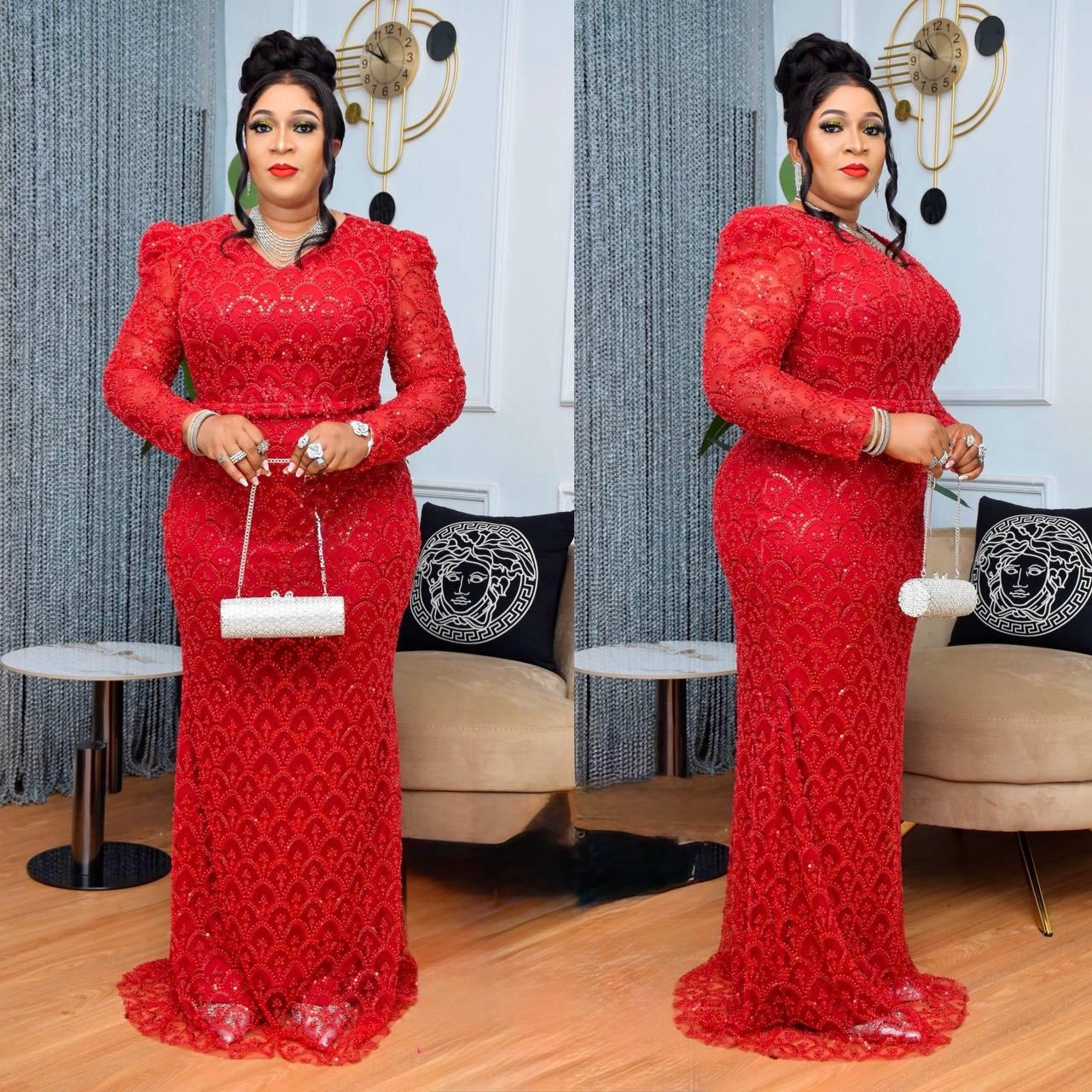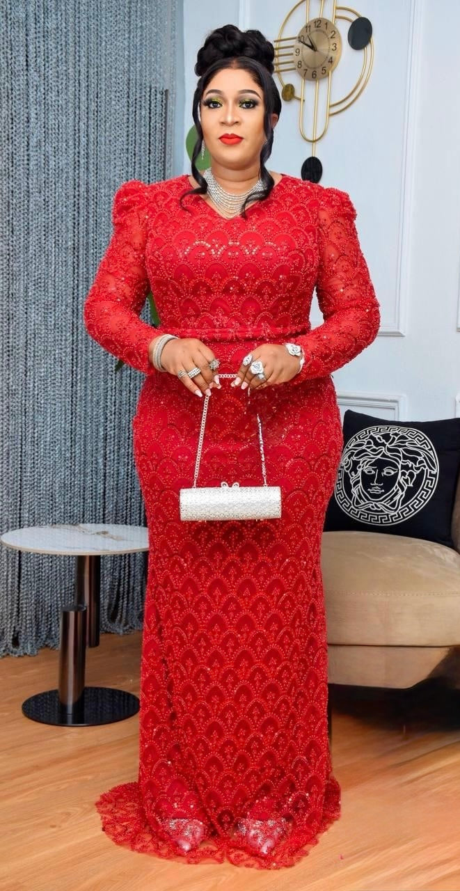 Red Sequin Embellished Wedding Guest Dress Floor Length Plus Size Mother of The Bride Mermaid Gown