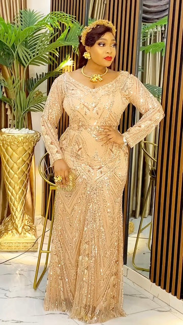 Sequin Floor Length Maxi Trumpet Gown | Mother of the Bride or Groom Wedding Guest