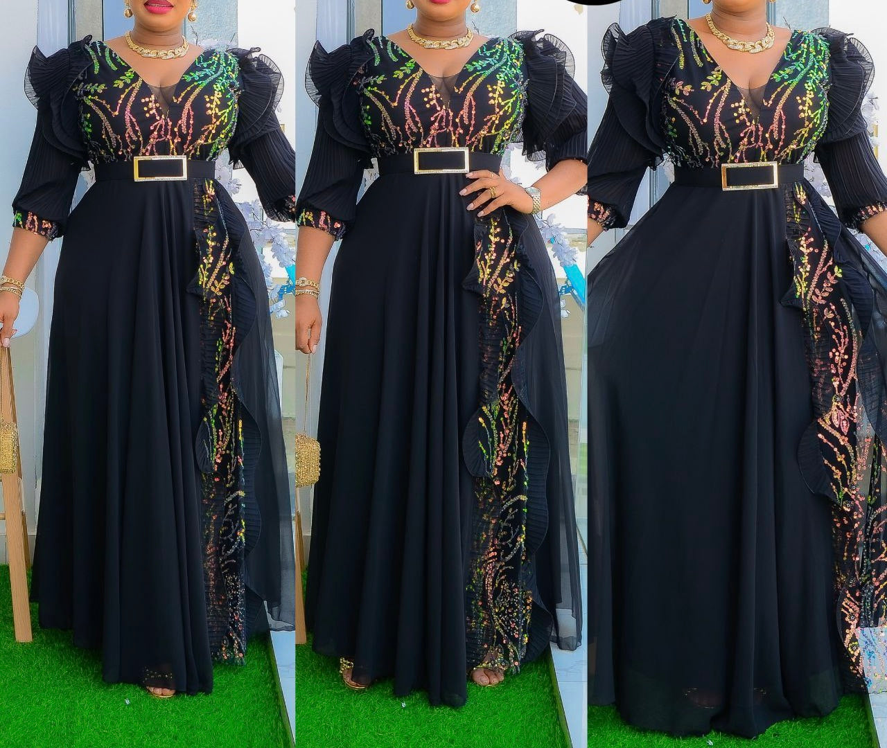 Sequin Ruffle Sleeve Maxi Dress | Birthday Party Graduation Mother of The Bride