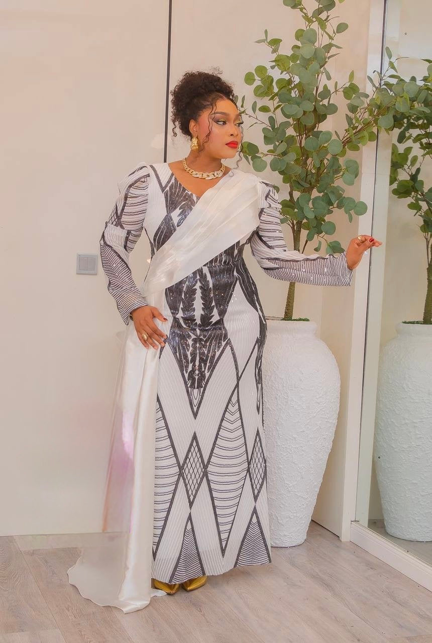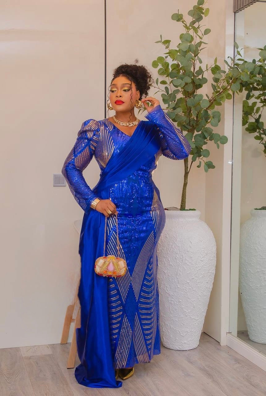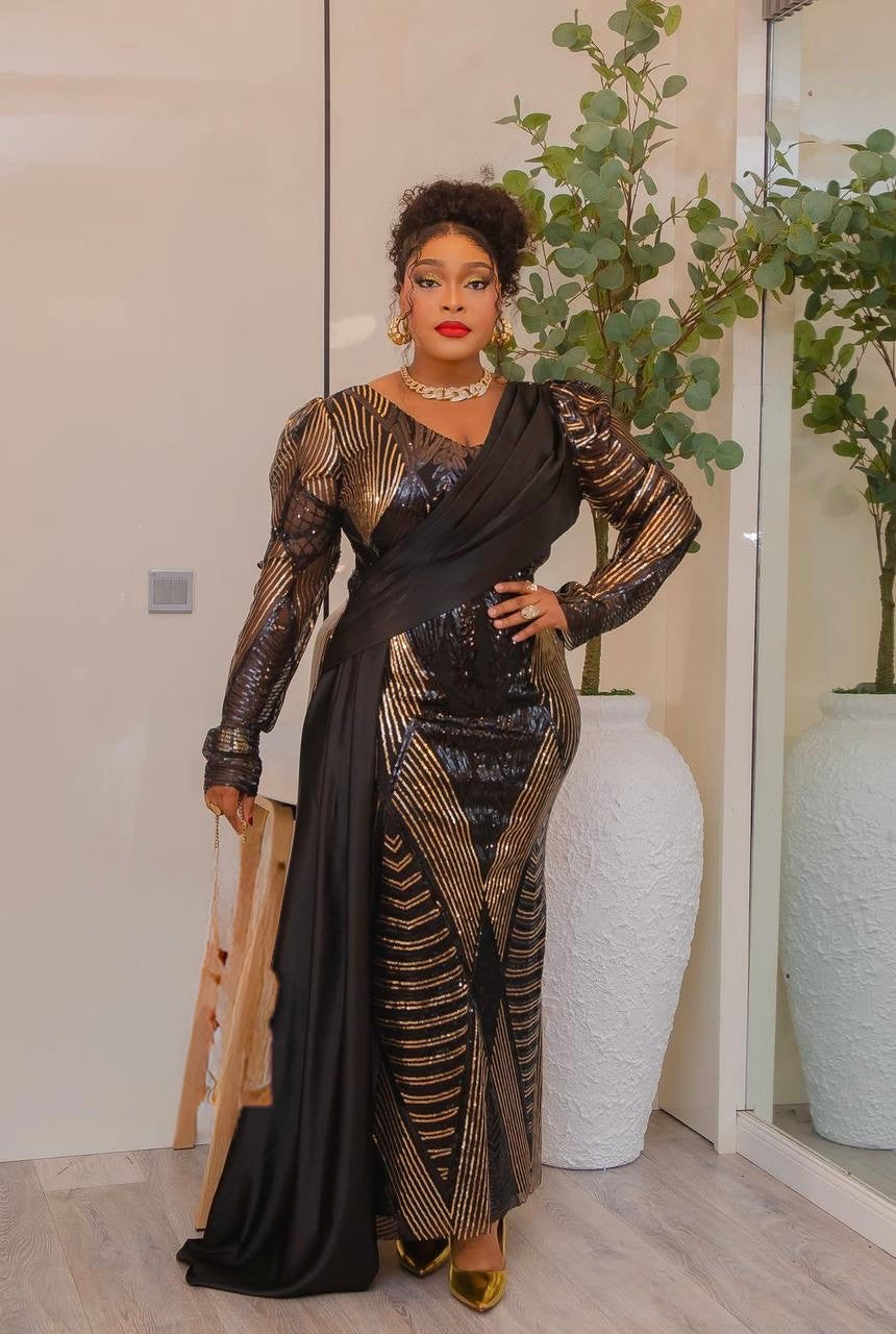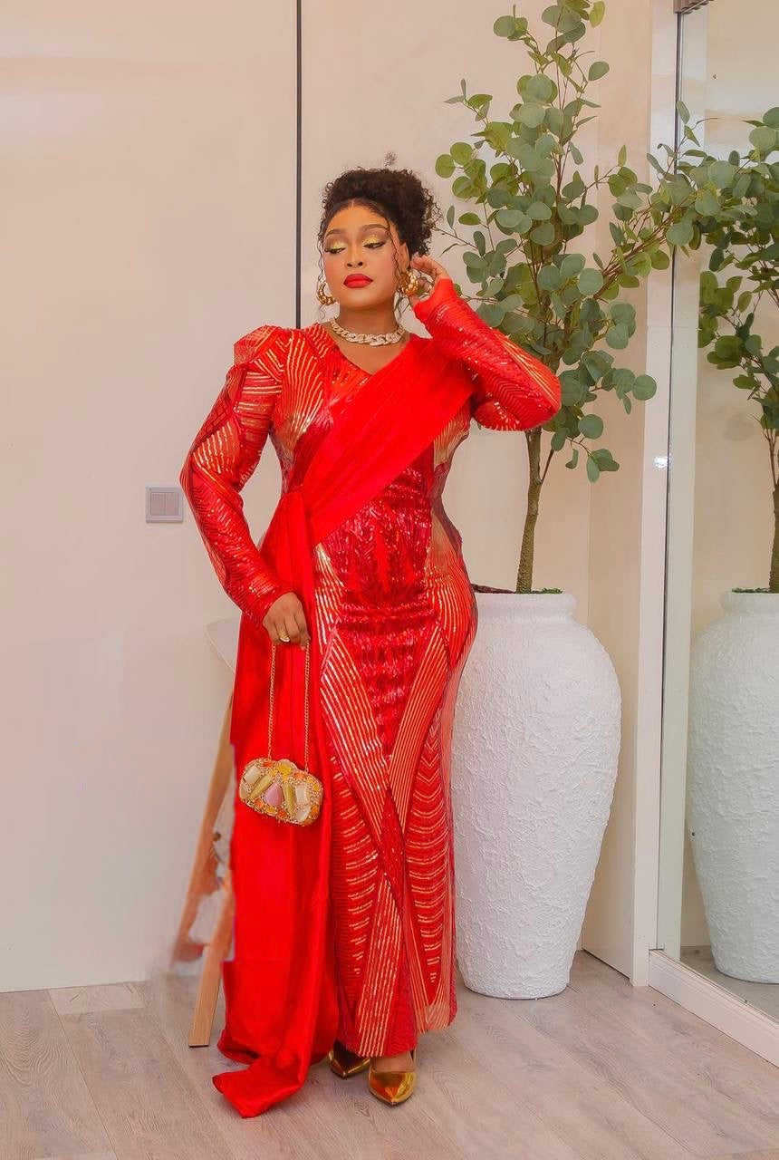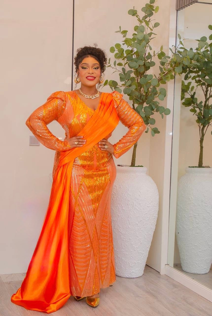 Sexy Orange Sequin Long Sleeve Draped Maxi Dress: Wedding Birthday Anniversary Gala
