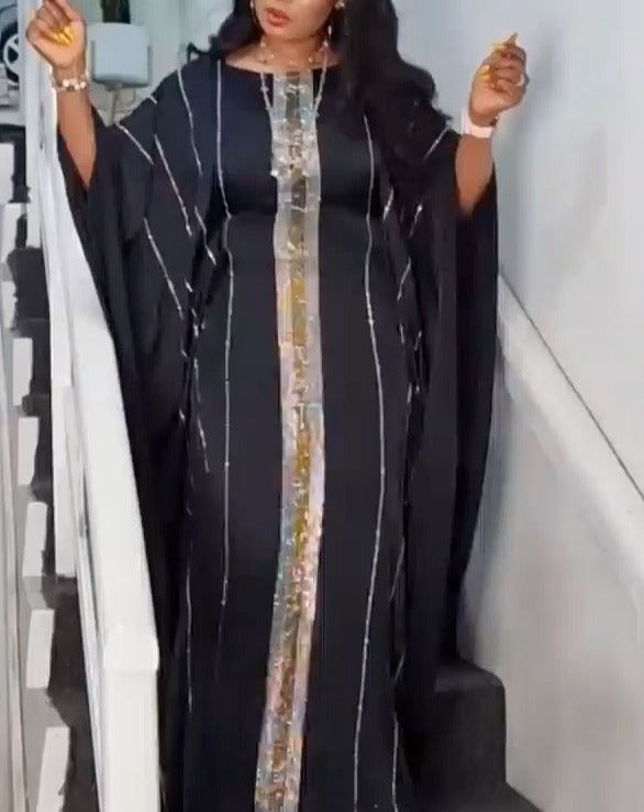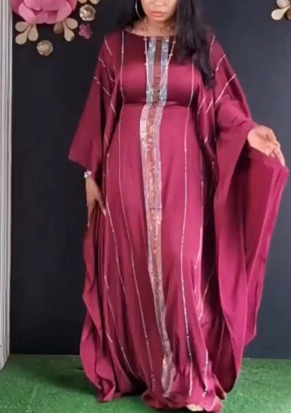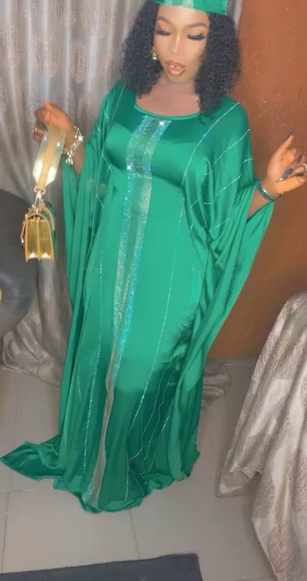 Unleash your vibrant, playful side with our Silk Boubou African Dress with scarf. With dazzling rhinestone embellishments and a flowy maxi length, this dress will have you radiating confidence and style. Available in 36 eye-catching Italian silk colors. (Warning: may cause heads to turn and compliments to flow!)