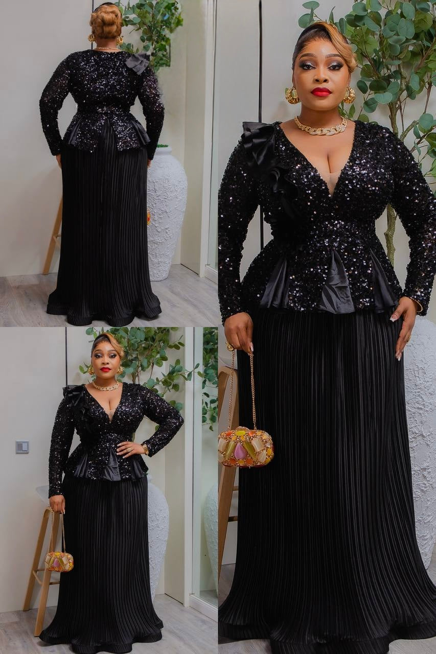 Sparkly Black Sequin Peplum Pleated Maxi Dress - Wedding Guest Mother of The Bride Dinner Cocktail