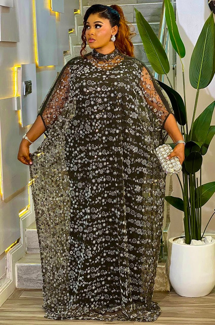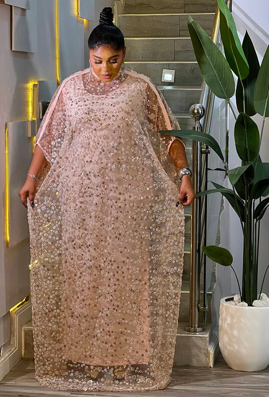 Sparkly Gold Kaftan Dress, African Bubu Wedding Guest Attire, Birthday Party Dinner Outfit