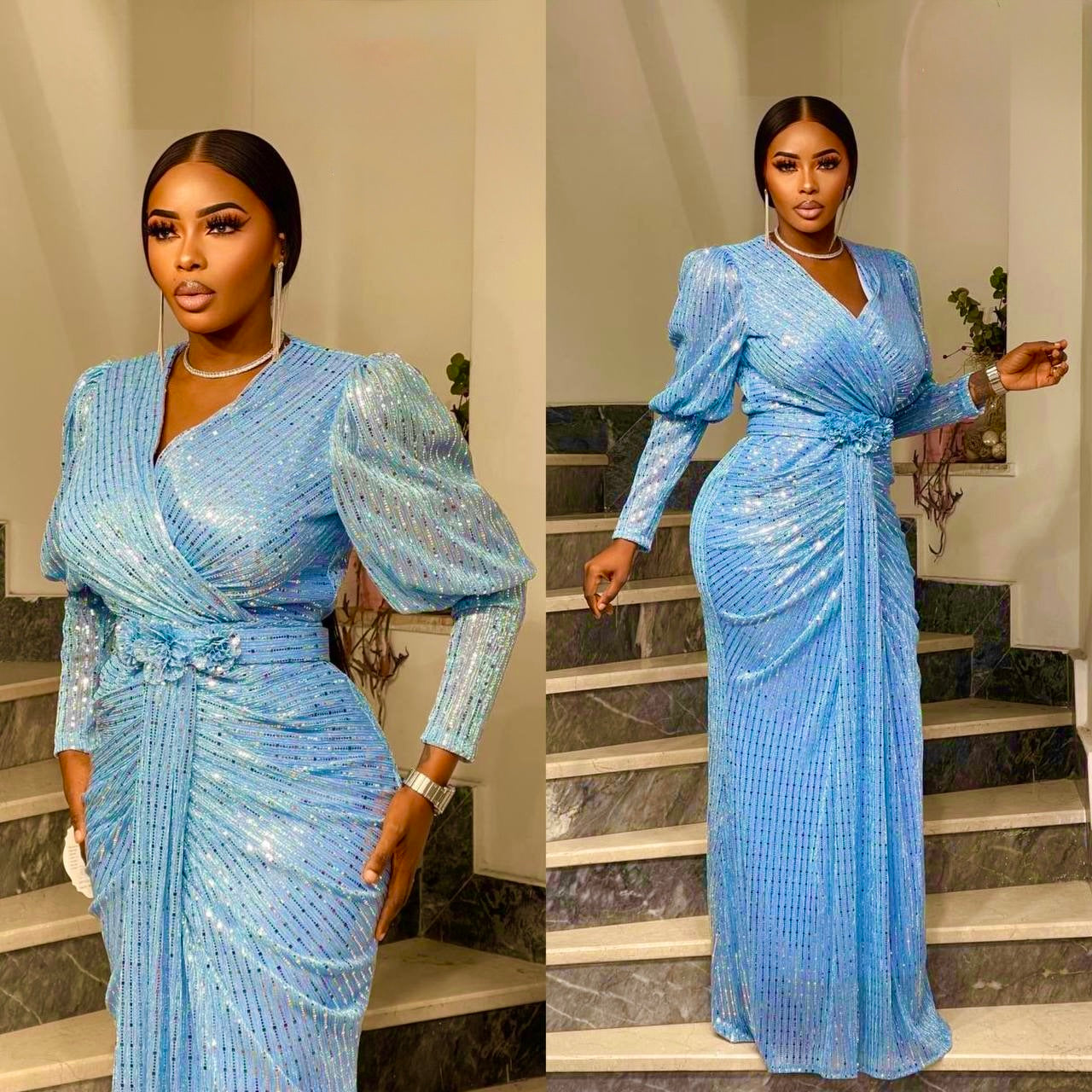 Sparkly Blue Wedding Guest Mermaid Dress, Ruched Maxi Plus Size Mother of The Bride, Celebrant Birthday Party Cocktail