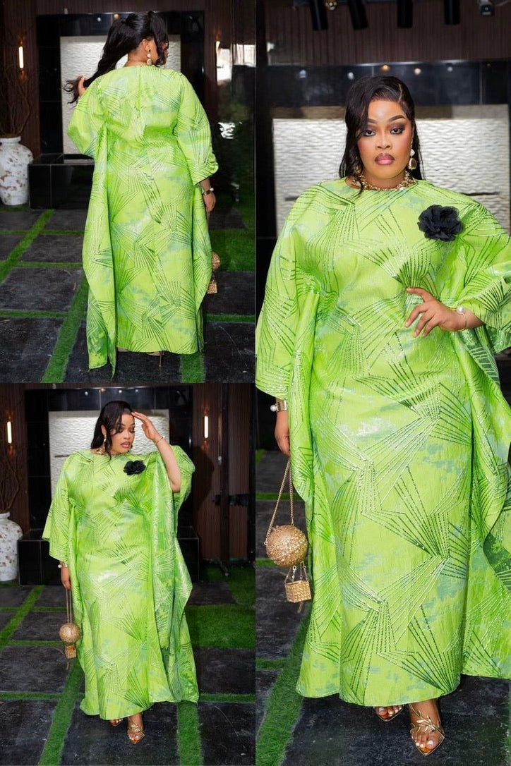 Statement Gold Brocade Bubu with 3D Detachable Flower, African Wedding Guest Dress Engagement Ceremony Mother of The Bride Attire
