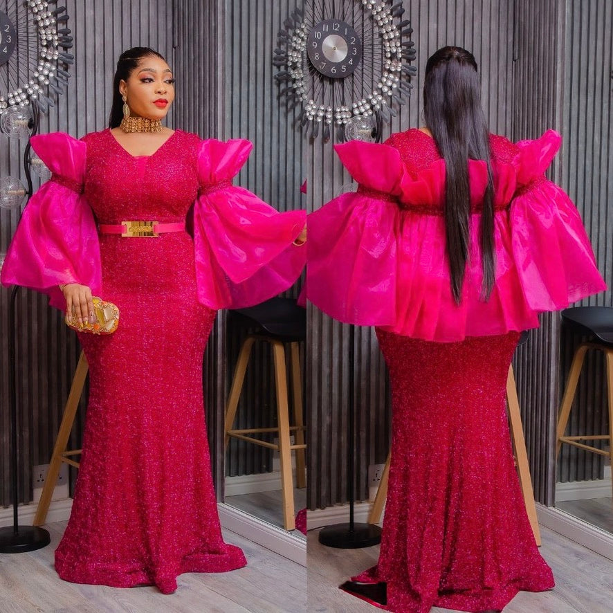 Statement Sleeve Wedding Guest Maxi Dress Mother of The Bride Mermaid Gown Plus Size Birthday Photoshoot Cocktail