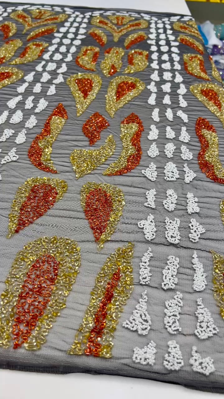 Shimmer, sparkle, and shine in this Hand Beaded Embellished Fabric - the perfect choice for any extra-special occasion. This statement-making fabric is perfect for dressmaking: bridal evening gown, mother of the bride/groom, prom, graduation, gala, birthday, pageants, or celebrant reception dress. The sparkle of the beadwork catching the light as you move, the way the fabric drapes effortlessly over your curves, and the feeling of pure confidence that comes with wearing such a stunning piece, creates a dazzling display that elevates your presence.