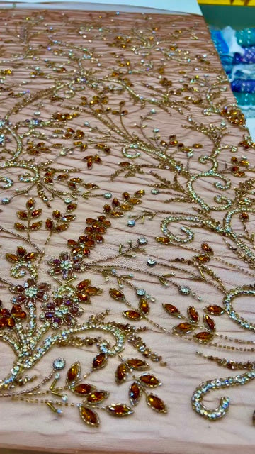 Shimmer, sparkle, and shine in this Swarovski Crystal Hand-Beaded Fabric - the perfect choice for any extra-special occasion. This statement-making fabric is perfect for dressmaking: bridal evening gown, mother of the bride/groom, prom, graduation, gala, birthday, pageants, or celebrant reception dress. The sparkle of the beadwork catching the light as you move, the way the fabric drapes effortlessly over your curves, and the feeling of pure confidence that comes with wearing such a stunning piece, creates a dazzling display that elevates your presence.