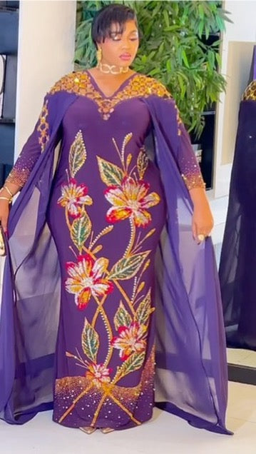 White Embellished Cape Maxi Dress for African Wedding Guest Anniversary Nigerian Engagement Ceremony Mother of The Bride