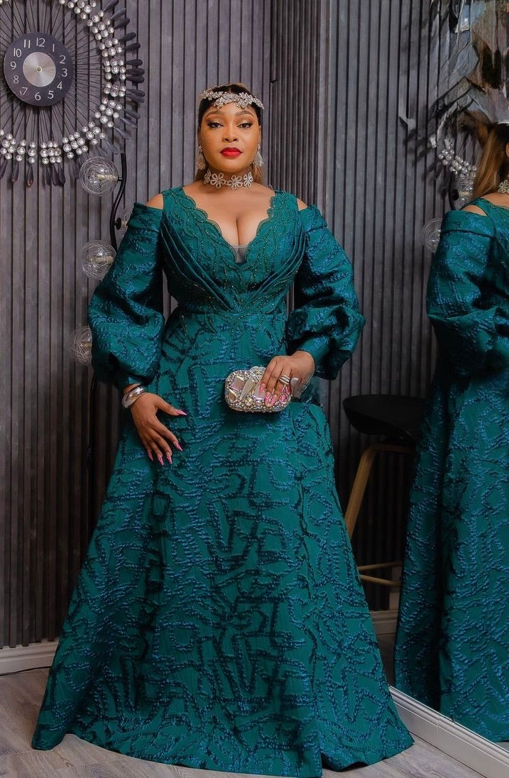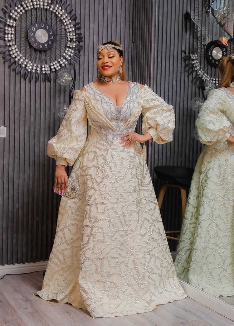 White Metallic Brocade Cold Shoulder Embellished A-Line Gown - Bridal Photoshoot Mother of The Groom or Bride Anniversary Engagement
