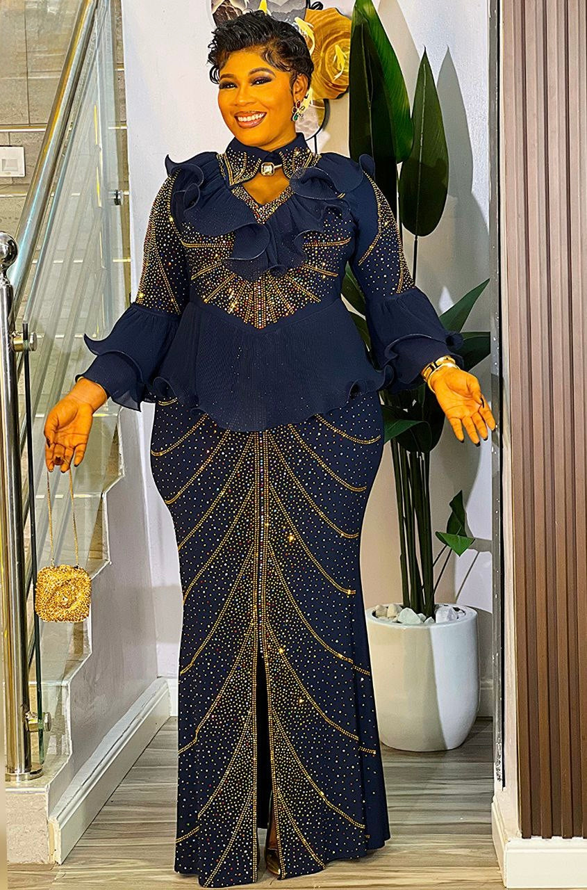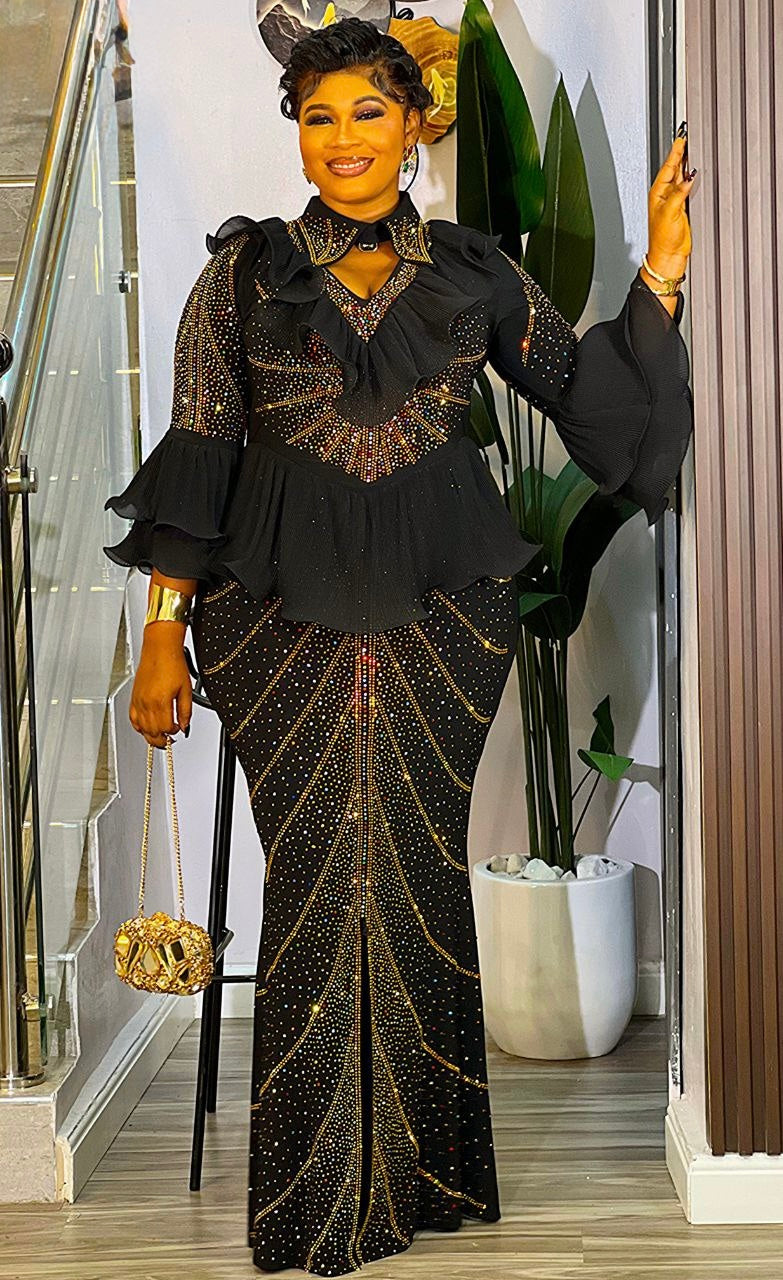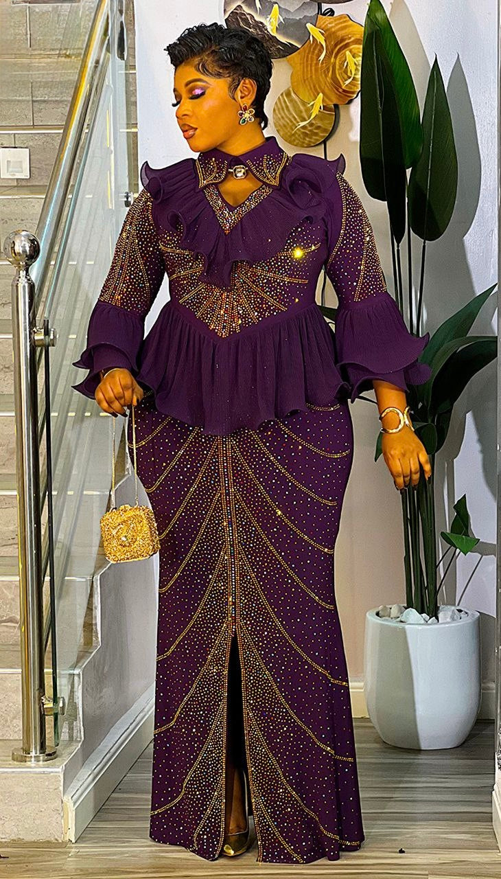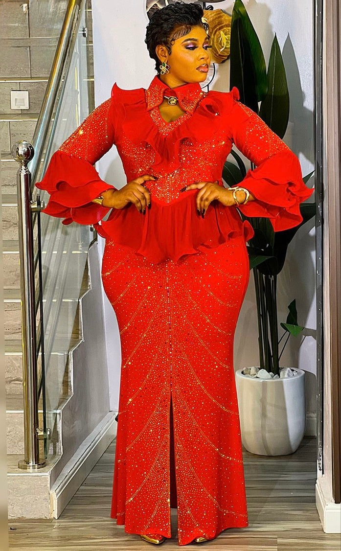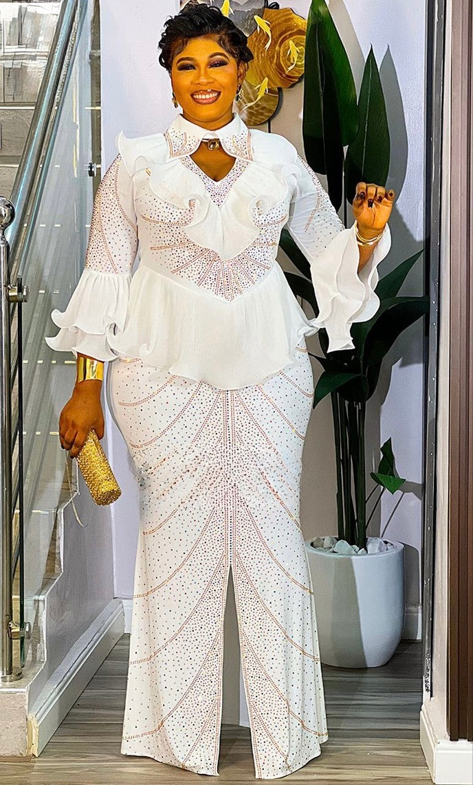 White Rhinestone Embellished Ruffle Peplum Maxi Dress: Mother of The Groom Wedding Guest Birthday Party Outfit