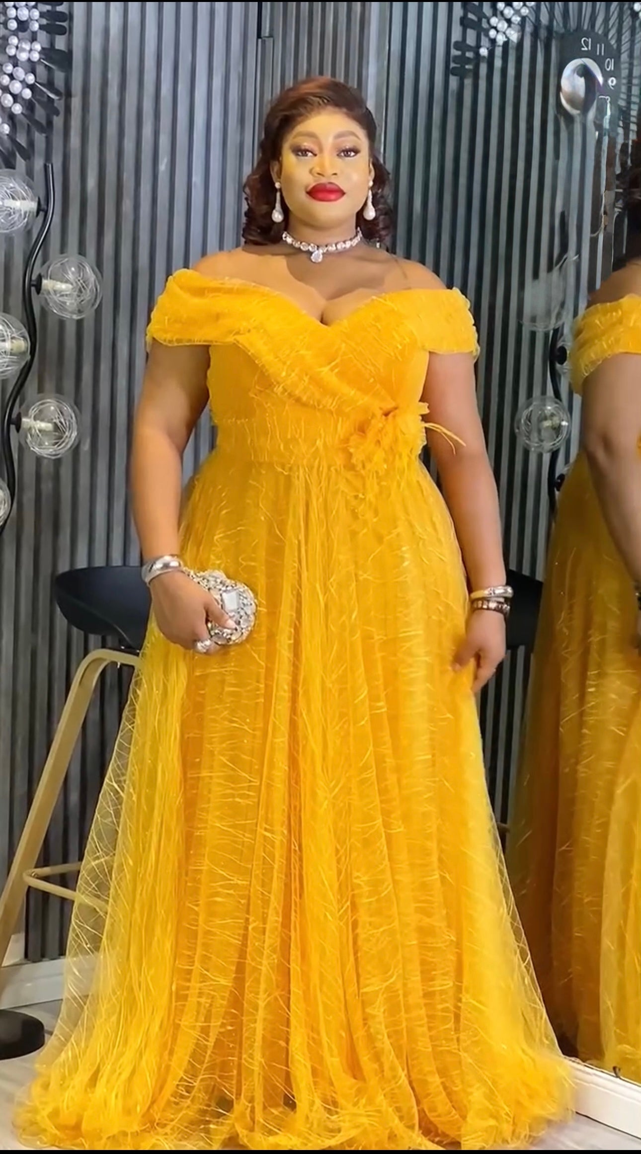 Yellow Off-The-Shoulder Fit & Flare Maxi Dress